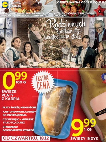{loadposition linkLidl} Nowa gazetka promocyjna Lidl. Polecane promocje z gazetki Lidl: Świeże płaty z karpia 100 g - 0,99 zł. Świeży indyk 1 kg - 9,99 zł. Małże świeże 1 kg - 12,99 zł. Akcje promocyjne z gazetki…