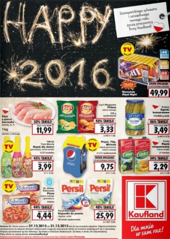 {loadposition linkKaufland} Nowa gazetka promocyjna marketu Kaufland. Polecane promocje z gazetki Kaufland: Zestaw Quickstep - 29,99 zł. Wyrzutnia Royal Night - 49,99 zł. Bateria New Year - 89,99 zł. Oferta ważna od 27.12 do 31.12 lub do wyczerpania…