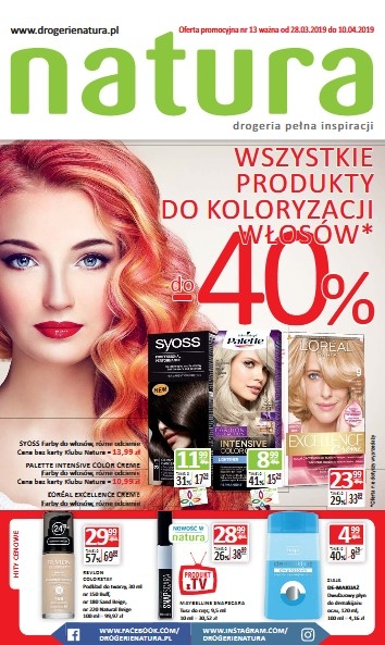 {loadposition linkNatura} 'Wszystkie produkty do koloryzacji włosów do -40%' - nowa gazetka promocyjna Drogerii Natura. Polecane promocje z gazetki Drogerii Natura: Farba do włosów Syoss - 11,99 zł*. Podkład do twarzy Revlon Colorstay 30 ml - 29,99 zł.…