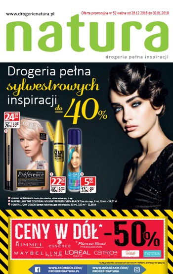 {loadposition linkNatura} 'Drogeria pełna sylwestrowych inspiracji do -40%' - nowa gazetka promocyjna Drogerii Natura. Polecane promocje z gazetki Drogerii Natura: Farba do włosów L'Oreal Preference - 24,99 zł. Tusz do rzęs Maybelline The Colossal Volum Express - 22,29 zł.…
