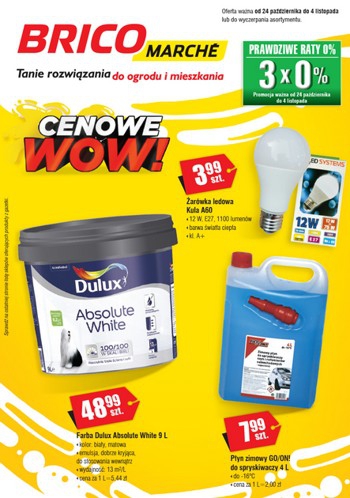 {loadposition linkBricomarche} 'Cenowe WOW' - nowa gazetka promocyjna sieci sklepów Bricomarche. Polecane promocje z gazetki Bricomarche: Żarówka ledowa kula A60 - 3,99 zł. Farba Dulux Absolute White 9 L - 48,99 zł. Płyn zimowy do spryskiwaczy GO/ON! 4 L…