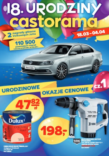 {loadposition linkCastorama} Nowa gazetka promocyjna sieci handlowej Castorama - "18. urodziny". Polecane promocje z gazetki Castorama: Farba Dulux Kolory Świata 2,5 L - 47,82 zł. Młotowiertarka MacAllister Standard SDS plus 1200 W - 198 zł. Kompakt WC Nefryt z…