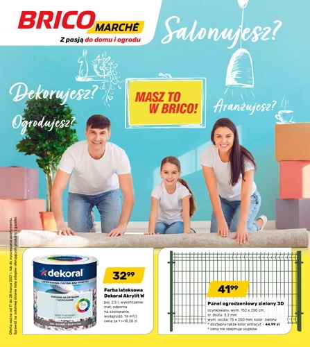 {loadposition linkBricomarche2} 'Masz to w Brico!' - nowa gazetka promocyjna sieci sklepów Bricomarche. Polecane promocje z gazetki Bricomarche: Farba lateksowa Dekoral Akrylit W 2,5 L - 32,99 zł. Panel ogrodzeniowy ocynkowany zielony 3D wym. 152x250 cm - 41,99 zł.…