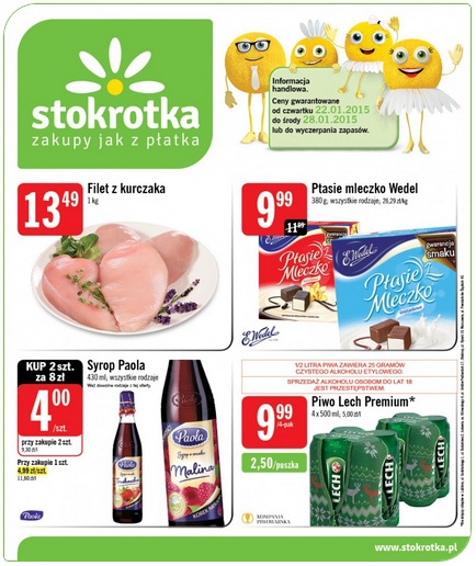 Nowa gazetka promocyjna sieci handlowej Stokrotka. Polecane promocje z gazetki Stokrotka: Filet z kurczaka 1 kg - 13,49 zł. Ptasie Mleczko Wedel 380 g - 9,99 zł. Piwo Lech Premium 4x500 ml - 9,99 zł. Oferta ważna…