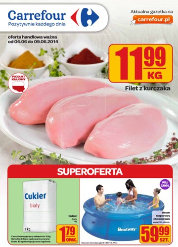 {loadposition linkCarrefour} Nowa gazetka promocyjna sieci handlowej Carrefour. Polecane promocje z gazetki Carrefour: Filet z kurczaka 1 kg - 11,99 zł. Cukier 1 kg - 1,79 zł. Basen rozporowy z kołnierzem - 59,99 zł. Oferta ważna od 4.06…