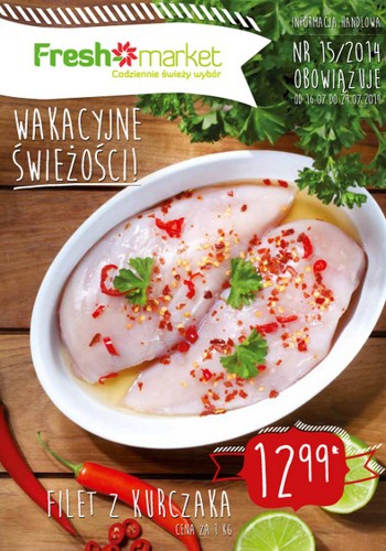 {loadposition linkFreshmarket} Nowa gazetka promocyjna Freshmarket - "Wakacyjne świeżości!". Polecane promocje z gazetki Freshmarket: Filet z kurczaka 1 kg - 12,99 zł. Kabanosy Extra Tarczyński 1 kg - 39,99 zł. Ogonówka Brandenburska Bell 1 kg - 29,99 zł. …