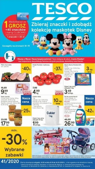 'Zbieraj znaczki i zdobądź kolekcję maskotek Disney' - nowa gazetka promocyjna sieci sklepów Tesco. Polecane promocje z gazetki Tesco: Filet z kurczaka 1 kg - 9,99 zł. Polskie pomidory malinowe 1 kg - 4,99 zł. Cukier biały 10x1 kg…