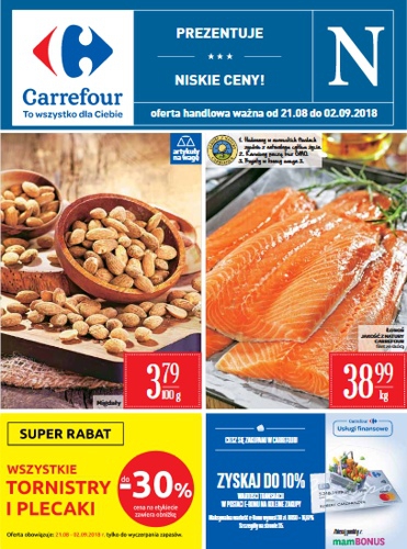 {loadposition linkCarrefour} 'Niskie ceny' - nowa gazetka promocyjna sklepu intenetowego Carrefour. Polecane promocje z gazetki Carrefour: Migdały 100 g - 3,79 zł. Filet z łososia ze skórą Jakość z natury Carrefour - 38,99 zł. Kiełbasa z Jakubowej spiżarni…