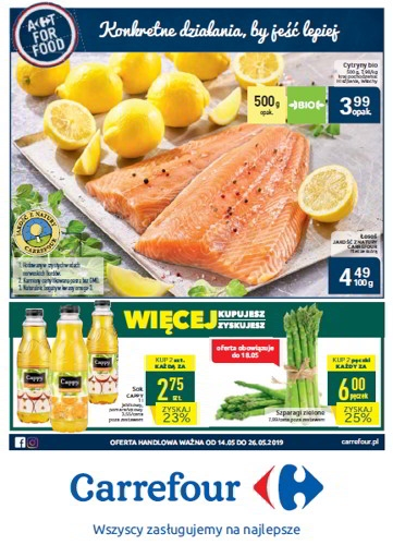 {loadposition linkCarrefour} 'Więcej kupujesz = zyskujesz' - nowa gazetka promocyjna sieci marketów Carrefour. Polecane promocje z gazetki Carrefour: Cytryny BIO 500 g - 3,99 zł. Filet z łososia ze skórą Jakość z natury Carrefour 100 g - 4,49…