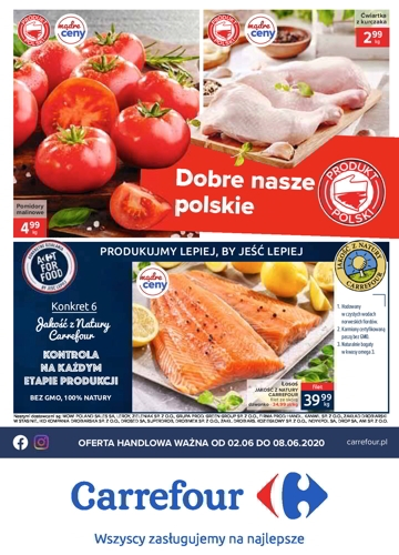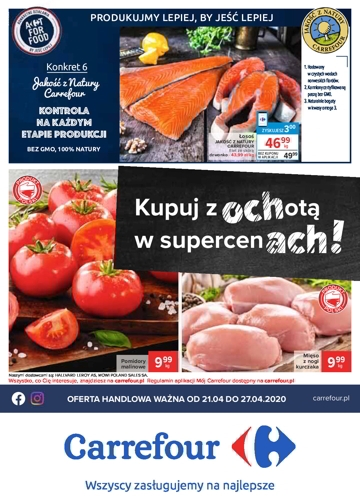 Nowa gazetka promocyjna sieci marketów Carrefour. Polecane promocje z gazetki Carrefour: Pomidory malinowe 1 kg - 4,99 zł. Ćwiartka z kurczaka 1 kg - 2,99 zł. Filet z łososia ze skórą Jakość Z Natury Carrefour 1 kg…
