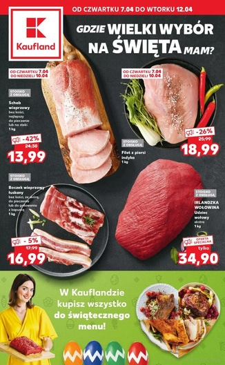 {loadposition linkKaufland} 'Gdzie wielki wybór na święta mam?' - nowa gazetka promocyjna sieci marketów Kaufland. Polecane promocje z gazetki Kaufland: Schab wieprzowy bez kości 1 kg - 13,99 zł*. Filet z piersi indyka 1 kg - 18,99 zł*. Boczek…