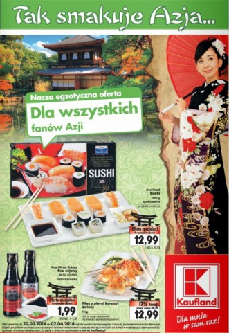 {loadposition linkKaufland} Nowa gazetka promocyjna marketu Kaufland - "Tak smakuje Azja...". Polecane promocje z gazetki Kaufland: Sushi Sun Food 225 g - 12,99 zł. Sos sojowy Pearl River Bridge 150 ml - 1,99 zł. Filet z piersi kurcząt…
