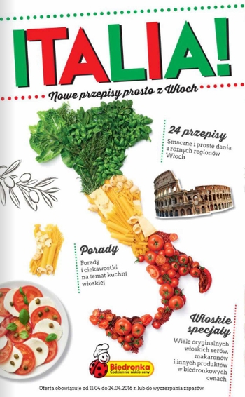 {loadposition linkBiedronka} Nowa gazetka promocyjna sieci handlowej Biedronka - "ITALIA". Polecane promocje z gazetki sieci Biedronka: Ser Asiago Zanetti 250 g - 9,99 zł. Carpaccio wołowe Beef Master 100 g - 4,99 zł. Filety Anchois Amerigo 50 g -…