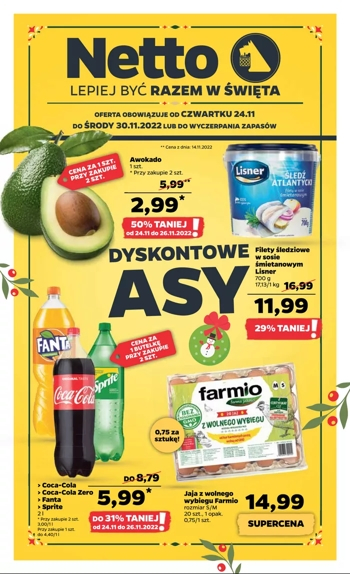 {loadposition linkNetto6} 'Dyskontowe asy' - nowa gazetka promocyjna sieci sklepów Netto. Polecane promocje z gazetki Netto: Awokado - 2,99 zł*. Filety śledziowe w sosie śmietanowym Lisner 700 g - 11,99 zł. Jaja z wolnego wybiegu Farmio 20 sztuk -…