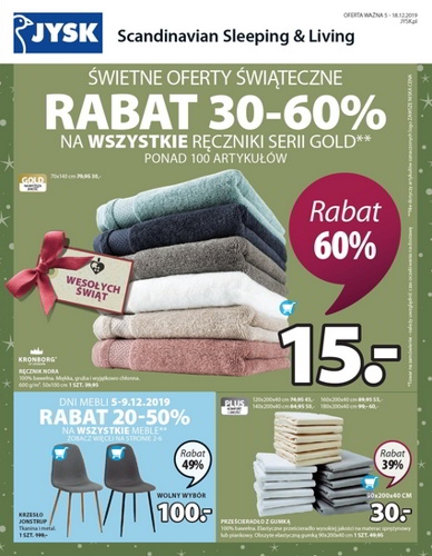 'Świetne oferty świąteczne' - nowa gazetka promocyjna sieci sklepów JYSK. Polecane promocje z gazetki Jysk: Rabat 20-55% na wszystkie dywany. Rabat 20-60% na wszystkie zegary. Rabat do 60% na wszystkie firany. Oferta ważna od…