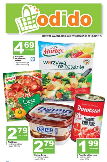 Nowa gazetka promocyjna sklepów Odido. Polecane promocje z gazetki Odido: Fix Knorr różne rodzaje - 1,95 zł. Serek topiony Hochland 100 g - 1,75 zł. Ogórek krótki 1 kg - 4,49 zł. Oferta ważna od 3.04 do…