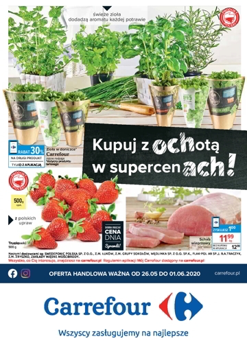 {loadposition linkCarrefour} 'Ceny niskie jak dawniej' - nowa gazetka promocyjna sieci marketów Carrefour. Polecane promocje z gazetki Carrefour: Mandarynki 1 kg - 2,99 zł. Łopatka wieprzowa bez kości 1 kg - 9,99 zł. Flaki wołowe krojone 1 kg -…