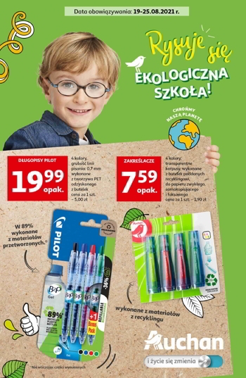 {loadposition linkAuchan} 'Rysuje się ekologiczna szkoła!' - nowa gazetka promocyjna sieci supermarketów Auchan. Polecane promocje z gazetki Auchan: Długopis Pilot 4 sztuki - 19,99 zł. Zakreślacz z materiałów z recyklingu 4 sztuki - 7,59 zł. Flamastry 12 kolorów -…