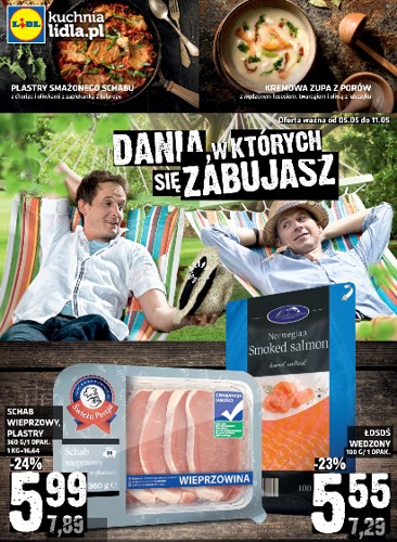 {loadposition linkLidl} Nowa gazetka promocyjna Lidl - "Dania, w których się zabujasz". Polecane promocje z gazetki Lidl: Schab wieprzowy, plastry 360 g - 5,99 zł. Łosoś wędzony 100 g - 5,55 zł. Nutella 1 kg - 21,99 zł. …