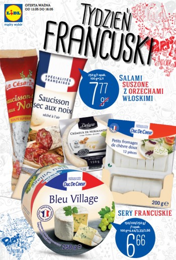 {loadposition linkLidl} Nowa gazetka promocyjna Lidl - "Tydzień francuski". Polecane promocje z gazetki Lidl: Salami suszone z orzechami włoskimi 250 g - 7,77 zł. Sery francuskie 150,200 lub 250 g - 6,66 zł. Ślimaki winniczki nadziewane 89 g -…