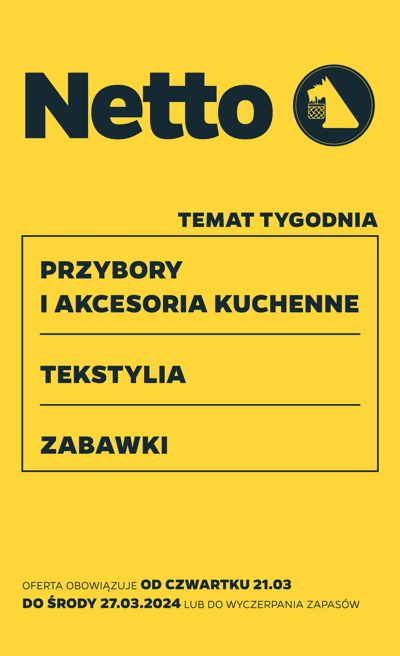 'Temat tygodnia' - nowa gazetka promocyjna sieci sklepów Netto. Polecane promocje z gazetki Netto: Forma do pieczenia - od 10 zł. Pojemnik na ciasto - 15 zł. Stolnica silikonowa - od 5 zł. Oferta ważna od czwartku…