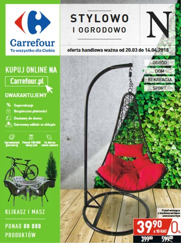 {loadposition linkCarrefour3} 'Wiosenny relaks w ogrodzie' - nowa gazetka promocyjna sieci marketów Carrefour. Polecane promocje z gazetki Carrefour: Rower miejski 28" - 699 zł. Fotel wiszący - 699 zł. Zestaw mebli Natura - 2299 zł. Oferta ważna…
