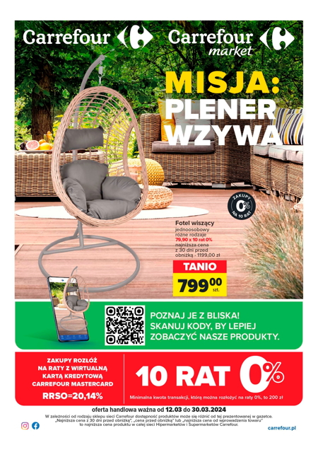 'Misja: Plener wzywa' - nowa gazetka promocyjna sieci marketów Carrefour. Polecane promocje z gazetki Carrefour: Fotel wiszący jednoosobowy - 799 zł. Zestaw mebli ogrodowych z linii Boston - 599 zł. Zestaw balkonowy Olo - 599 zł. Oferta ważna…