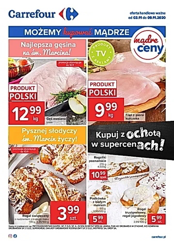 {loadposition linkCarrefour4} 'Możemy kupować mądrze' - nowa gazetka promocyjna sieci marketów Carrefour. Polecane promocje z gazetki Carrefour: Gęś owsiana 1 kg - 12,99 zł. Filet z piersi kurczaka 1 kg - 9,99 zł. Rogal świąteczny z nadzieniem z białego…
