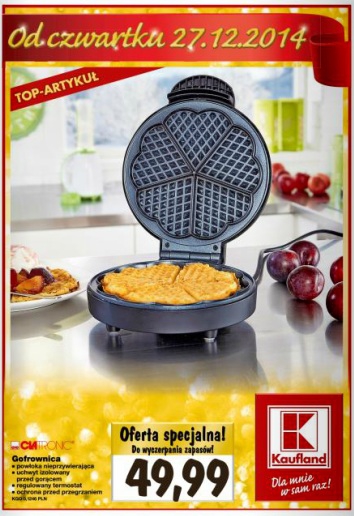 {loadposition linkKaufland} Nowa gazetka promocyjna marketu Kaufland. Polecane promocje z gazetki Kaufland: Gofrownica Ciatronic - 49,99 zł. Zestaw rakiet King Size - 99,99 zł. Moździerz pirotechniczny Shark Slayer - 29,99 zł. Oferta ważna od 27.12 lub do…