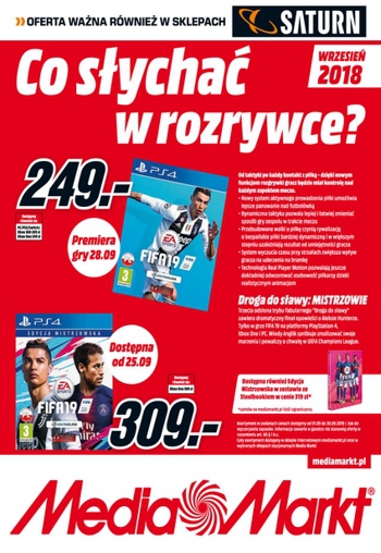 {loadposition linkMediaMarkt} 'Co słychać w rozrywce?' - wrześniowe wydanie gazetki promocyjnej Media Markt. Polecane promocje z gazetki Media Markt: Gra PC FIFA 19 - 209 zł. Gra PS4 NBA 2K19 - 269 zł. Gra PS4 Shadow of the Tomb…