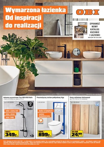{loadposition linkObi} 'Wymarzona łazienka od inspiracji do realizacji' - nowa gazetka promocyjna sieci marketów Obi. Polecane promocje z gazetki Obi: Kolumna prysznicowa Baliv Tina KBS-8150 - 349 zł. Pneumatyczny zestaw podtynkowy Cersanit Vigo - 899 zł. Gres szkliwiony Italianwood…