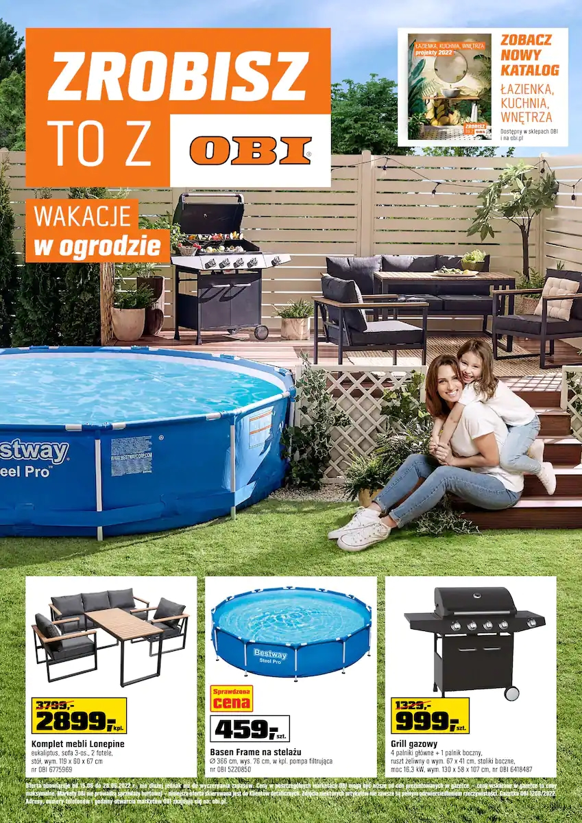 {loadposition linkObi} 'Zrobisz to z Obi. Wakacje w ogrodzie' - nowa gazetka promocyjna sieci marketów Obi. Polecane promocje z gazetki Obi: Komplet mebli Lonepine - 2899 zł. Basen na stelażu Bestway śr. 366 cm - 459 zł. Grill gazowy…