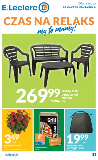 {loadposition linkEleclerc2} 'Czas na relaks my to mamy!' - nowa gazetka promocyjna sieci handlowej E.Leclerc. Polecane promocje z gazetki E.Leclerc: Zestaw mebli ogrodowych Madura Vog - 269,99 zł. Pelargonia lub Surfinia w doniczce - 3,49 zł. Grill jednorazowy Dancoal -…