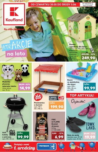 {loadposition linkKaufland} 'Atrakcje na lato' - nowa gazetka promocyjna sieci marketów Kaufland. Polecane promocje z gazetki Kaufland: Domek ogrodowy dla dzieci z tworzywa sztucznego - 249,90 zł. Piaskownica z dachem Kid Land - 199,90 zł. Grill kulisty z pokrywą…