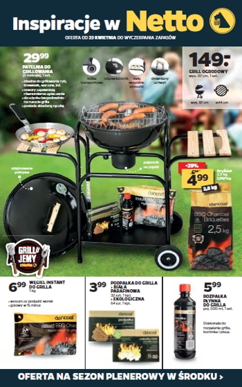 {loadposition linkNetto} 'Inspiracje' - nowa gazetka promocyjna sieci sklepów Netto. Polecane promocje z gazetki Netto: Patelnia do grillowania - 29,99 zł. Grill ogrodowy - 149 zł. Węgiel instant do grilla 1 kg - 6,99 zł. …