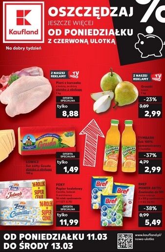 'Oszczędzaj jeszcze więcej od poniedziałku z czerwoną ulotką' - nowa gazetka promocyjna sieci marketów Kaufland. Polecane promocje z gazetki Kaufland: Mięso mielone wieprzowe 500 g - 3,99 zł. Jogurt owocowy Jogobella Zott 150 g - 0,88 zł. Gruszki…