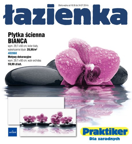 Nowy katalog Praktiker - "Łazienka". Polecane promocje z katalogu Praktiker: Płytka ścienna Bianca m² - 28,99 zł. Zestaw podtynkowy K 50 - 389 zł. Grzejnik łazienkowy 600x400 mm - 76,99 zł. Oferta ważna od 18.06 do 24.07.