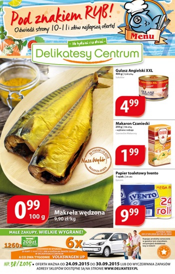 {loadposition linkDelikatesyCentrum} Nowa gazetka promocyjna Delikatesów Centrum. Polecane promocje z gazetki Delikatesów Centrum: Makrela wędzona 100 g - 0,99 zł. Gulasz Angielski XXL 400 g - 4,99 zł. Makaron Czaniecki 250 g - 1,49 zł. Oferta ważna od…