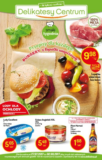 {loadposition linkDelikatesyCentrum} Nowa gazetka promocyjna Delikatesów Centrum. Polecane promocje z gazetki Delikatesów Centrum: Łopatka wieprzowa bez kości 1 kg - 9,98 zł. Lody Excellent 1 L - 5,05 zł. Gulasz Angielski XXL Sokołów 400 g - 5,49 zł.…