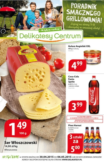 {loadposition linkDelikatesyCentrum} Nowa gazetka promocyjna Delikatesów Centrum. Polecane promocje z gazetki Delikatesów Centrum: Ser Włoszczowski 100 g - 1,49 zł. Gulasz Angielski XXL 400 g - 4,99 zł. Piwo Harnaś 3x500 ml - 5 zł. Oferta ważna od…