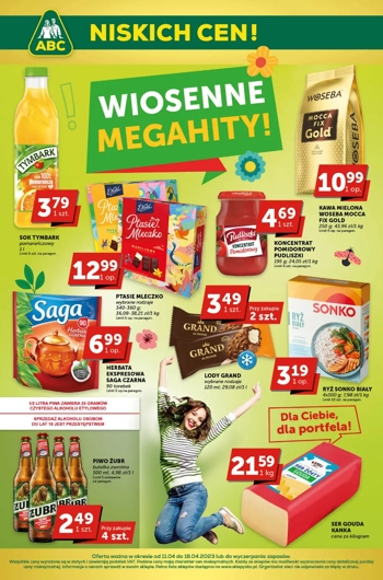 {loadposition linkABC} 'Wiosenne megahity' - nowa gazetka promocyjna sieci sklepów ABC. Polecane promocje z gazetki ABC: Sok Tymbark 1 L - 3,79 zł*. Kawa mielona Woseba Mocca Fix Gold 250 g - 10,99 zł**. Herbata ekspresowa Saga czarna 90…