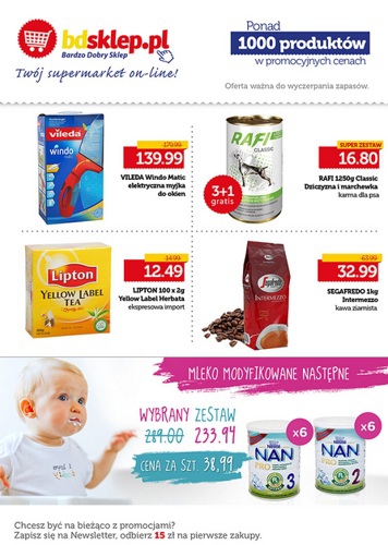 {loadposition linkBdsklep} Nowa gazetka promocyjna supermarketu internetowego Bdsklep.pl - "Ponad 1000 produktów w promocyjnych cenach". Polecane promocje z gazetki Bdsklep.pl: Elektryczna myjka do okien VILEDA Windo Matic - 139,99 zł. Kawa ziarnista SEGAFREDO Intermezzo 1 kg - 32,99 zł.…