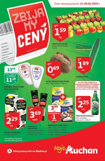 {loadposition linkAuchan} 'Zbijamy ceny' - nowa gazetka promocyjna sieci marketów Auchan. Polecane promocje z gazetki Auchan: Jabłka układane 1 kg - 1,59 zł. Ogórek długi 1 sztuka - 1,89 zł. Kabanosy Morlińskie 105 g - 3,69 zł.…