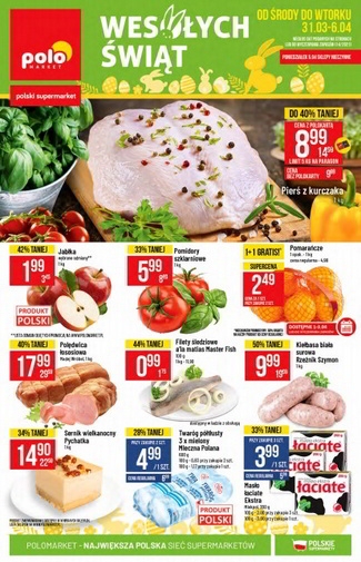 {loadposition linkPoloMarket} 'Wesołych Świąt' - nowa gazetka promocyjna sieci sklepów Polo Market. Polecane promocje z gazetki Polo Market: Pierś z kurczaka 1 kg - 9,99 zł*. Jabłka 1 kg - 1,99 zł. Kiełbasa biała surowa Rzeźnik Szymon 1 kg…