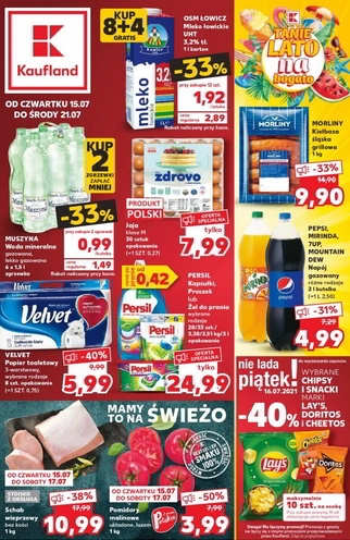{loadposition linkKaufland} 'Tanie lato na bogato' - nowa gazetka promocyjna sieci marketów Kaufland. Polecane promocje z gazetki Kaufland: Kiełbasa śląska grillowa Morliny 1 kg - 9,90 zł. Jaja klasa M Zdrovo 30 sztuk - 7,99 zł. Papier toaletowy Velvet…