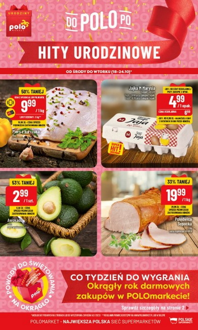 {loadposition linkPoloMarket2} 'Do Polo po hity urodzinowe - nowa gazetka promocyjna sieci sklepów Polo Market. Polecane promocje z gazetki Polo Market: Pierś z kurczaka 1 kg - 9,99 zł*. Jaja Marysia klasa M 10 sztuk - 4,99 zł**. Awokado…