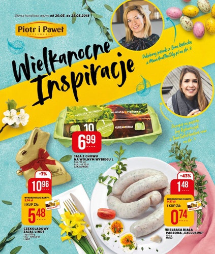'Wielkanocne inspiracje' - nowa gazetka promocyjna sieci sklepów Piotr i Paweł. Polecane promocje z gazetki Piotr i Paweł: Jaja z chowu na wolnym wybiegu Czajkowski klasa L 10 sztuk - 6,99 zł. Czekoladowy zając Lindt 100 g - 5,48…