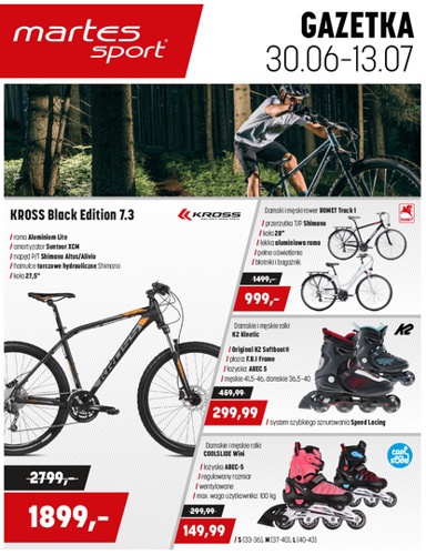 {loadposition linkMartesSport} Nowa gazetka promocyjna sieci sklepów Martes Sport. Polecane promocje z gazetki Martes Sport: Rower Kross Black Edition 7.3 - 1899 zł. Japonki damskie lub męskie Nike Solay Thong - 99,99 zł. Namiot plażowy Shelter - 69,99 zł.…