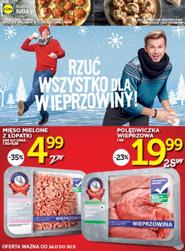 {loadposition linkLidl} Nowa gazetka promocyjna Lidl - "Rzuć wszystko dla wieprzowiny!". Polecane promocje z gazetki Lidl: Mięso mielone z łopatki wieprzowej 500 g - 4,99 zł. Polędwiczka wieprzowa 1 kg - 19,99 zł. Jegginsy Esmara - 35 zł. …