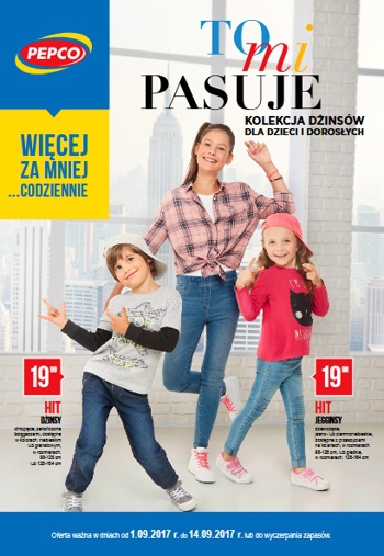 {loadposition linkPepco} Nowa gazetka promocyjna Pepco - "To mi pasuje". Polecane promocje z gazetki Pepco: Dżinsy chłopięce - 19,99 zł. Jegginsy dziewczęce - 19,99 zł. Jegginsy damskie - 29,99 zł. Oferta ważna od 1.09…